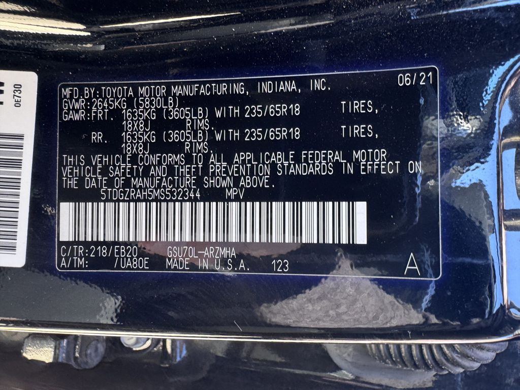 2021 Midnight Black Metallic Toyota Highlander 3.5L V6 DOHC FWD XLE