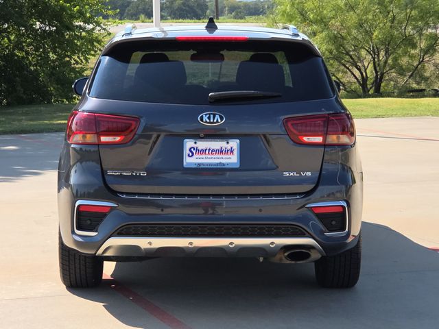 2019 Kia Sorento SX Limited 4D Sport Utility SX Limited Platinum Graphite V6 8-Speed Automatic FWD This vehicle comes well equipped with Sorento SX Limited, 4D Sport Utility, V6, 8-Speed Automatic, FWD, Platinum Graphite, Satin Black Leather, 10 Speakers, AM/FM radio: SiriusXM, Auto High-beam Headlights, Brake assist, Bumpers: body-color, Delay-off headlights, Electronic Stability Control, Front fog lights, Fully automatic headlights, harman/kardon® Speakers, Heated door mirrors, Navigation System, Panic alarm, Power door mirrors, Power Liftgate, Power moonroof, Radio data system, Radio: UVO eServices w/Premium Navigation, Roof rack: rails only, Security system, Speed control, Spoiler, and Turn signal indicator mirrors.