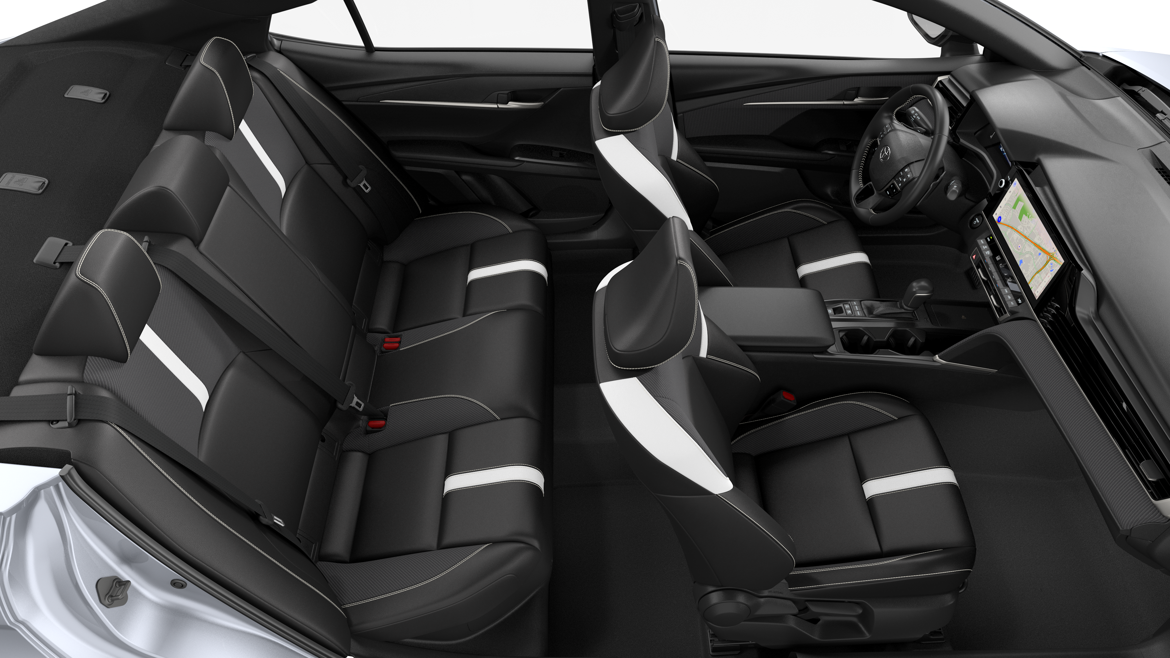 - Black lower rocker appliqué