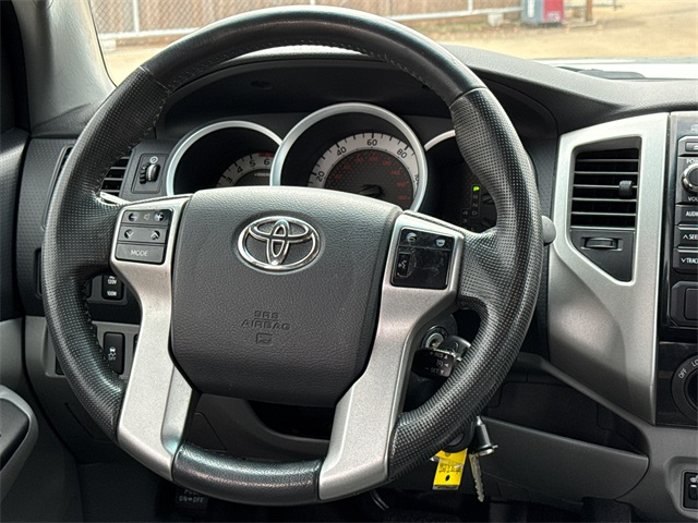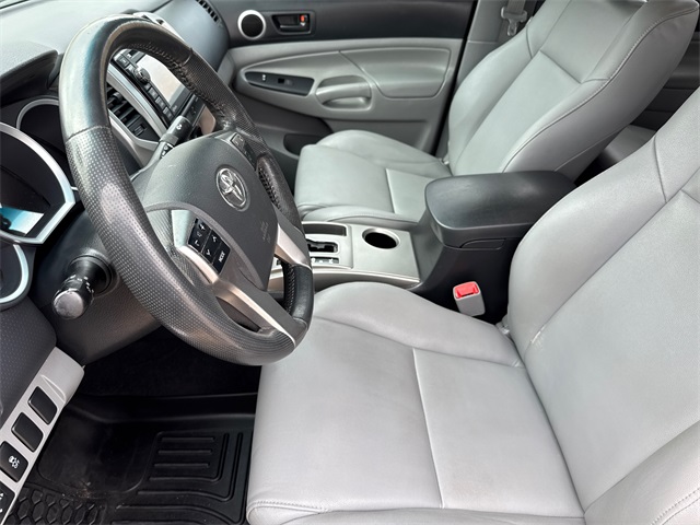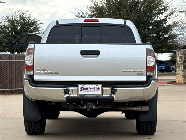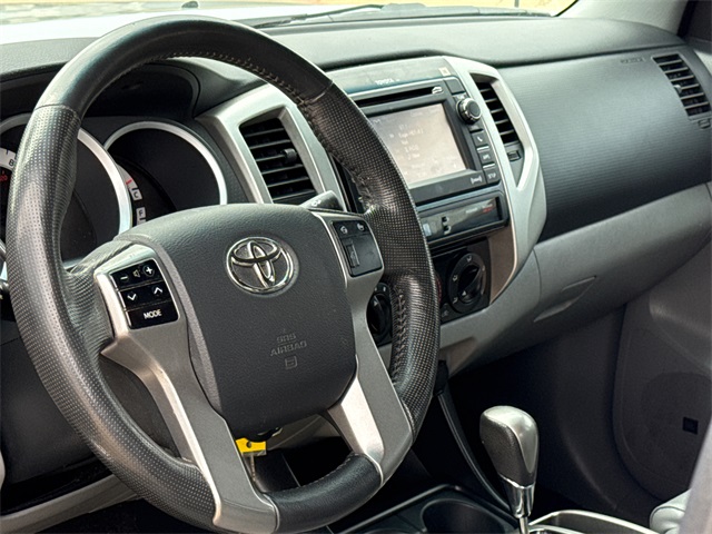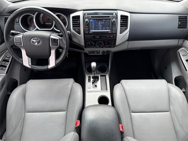 CARFAX One-Owner. 2013 Toyota Tacoma PreRunner V6 4D Double Cab PreRunner Silver Streak Metallic 4.0L V6 EFI DOHC 24V 5-Speed Automatic with Overdrive RWD This vehicle comes well equipped with Convenience Package (Cruise Control, Privacy Glass, Remote Keyless Entry System, Sliding Rear Window, and Steering Wheel Audio Controls), Limited Package (115V/400W Deck Powerpoint, 18" Chrome Clad Alloy Wheels, Auto-Dimming Mirror, Chrome Door Handles, Chrome Grille Surround & Rear Bumper, Chrome Power Mirrors, Color-Keyed Front Bumper & Overfenders, Compass & Outside Temperature Gauge, Dual Sunvisors w/Mirrors & Extenders, Fog Lamps, Heated Sport Seats, Leather-Wrapped Steering Wheel & Shift Knob, Limited Badge, Limited Grade, Metallic Tone Instrument Panel Trim, Radio: Display Audio w/Nav/Entune & JBL, SofTex Leather Seat Trim, Tailgate-Handle Integrated Backup Camera, and Variable Speed Wipers), Tacoma PreRunner V6, 4D Double Cab, 4.0L V6 EFI DOHC 24V, 5-Speed Automatic with Overdrive, RWD, Graphite w/Fabric Seat Trim (FL) or SofTex Leather Seat Trim, Power door mirrors, and Rear step bumper.