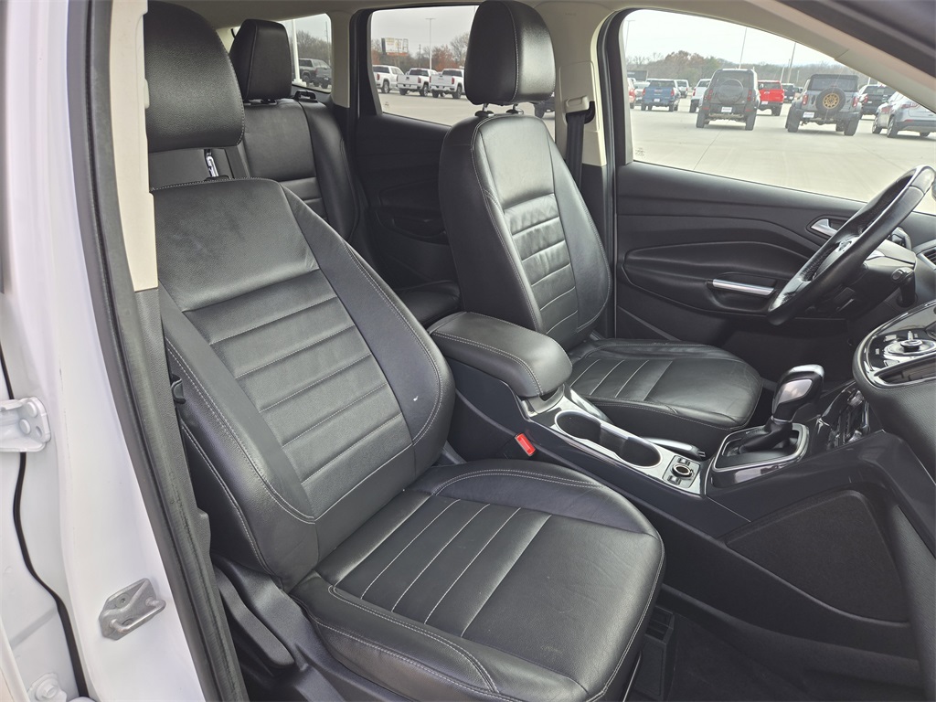 Bluetooth, Hands-Free Connections, Portable Audio Connections, Premium Audio, Backup Camera, Leather Seats, Premium Wheels, High Performance Tires, Power Liftgate, Escape Titanium, 4D Sport Utility, EcoBoost 2.0L I4 GTDi DOHC Turbocharged VCT, 6-Speed Automatic, FWD, White Platinum Tricoat, Charcoal Black w/Heated Leather-Trimmed Buckets w/60/40 Rear Seat, Equipment Group 400A, Power Liftgate.