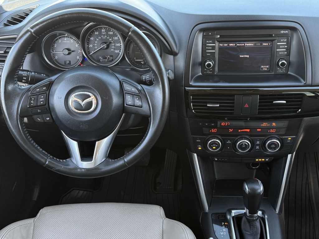 CARFAX One-Owner. Bluetooth, Hands-Free Connections, Navigation / GPS / Telematics, Portable Audio Connections, Premium Audio, Backup Camera, Leather Seats, Premium Wheels, High Performance Tires, Sunroof / Moonroof, CX-5 Grand Touring, 4D Sport Utility, SKYACTIV® 2.5L 4-Cylinder DOHC 16V, 6-Speed Automatic, FWD, Crystal White Pearl Mica, Sand w/Leather Seat Trim, Advanced Keyless Entry System, Auto Dimming Rearview Mirror w/HomeLink, Bi-Xenon HID Headlights, Grand Touring Technology Package, Navigation System, Power moonroof, Smart City Brake Support System.