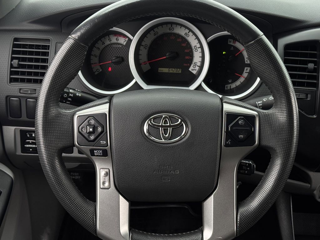 Clean CARFAX. Bluetooth, Hands-Free Connections, Portable Audio Connections, Premium Audio, Premium Wheels, High Performance Tires, Towing Package, Tacoma PreRunner, 4D Double Cab, 2.7L I4 DOHC 16V, 4-Speed Automatic, RWD, Graphite w/Cloth Seat Trim (FE) or Cloth Seat Trim (FC) or Cloth Seat Trim (FH), Convenience Package, Cruise Control, Privacy Glass, Remote Keyless Entry System, Sliding Rear Window, Steering Wheel Audio Controls.