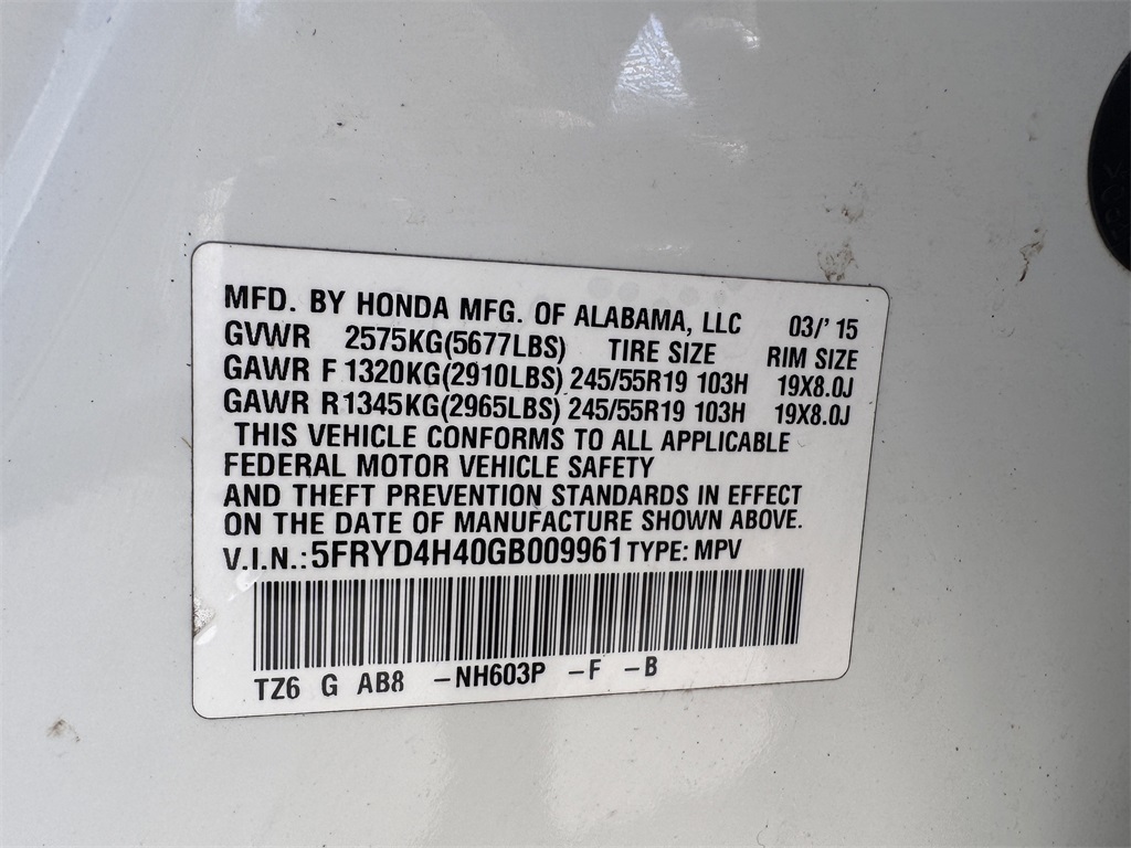 - 3.5L V-6 gasoline direct injection, i-VTEC variable valve control, premium unleaded, engine with cylinder deactivation and 290HP
