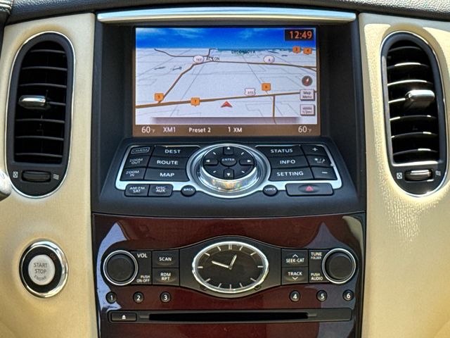 CARFAX One-Owner. Clean CARFAX. LEATHER INTERIOR, POWER MOONROOF/SUNROOF, POWER DRIVER'S SEAT, POWER PASSENGER SEAT, HEATED FRONT SEATS, BACK UP CAMERA, LOCAL TRADE IN, WELL MAINTAINED, LOW MILES, Navigation System. This vehicle comes well equipped with Navigation System Deluxe Touring Package (19" x 8.5" Split 5-Spoke Aluminum-Alloy Wheels, 2-Way Power Driver's Seat Lumbar Support, 8-Way Power Front-Passenger's Seat, Coat Hanger On Driver's Seat Head Restraint, High-Intensity Discharge Xenon Headlights, Power Up-Folding 2nd Row Seats, and Premium Stitching On Meter Hood), Premium Package (Advanced Climate Control System, Aluminum Roof Rails, Auto-Dimming Inside Mirror, Bose 11-Speaker Premium Audio System, Dual Occupant Memory System For Driver's Seat, HomeLink Universal Transceiver, Maple Interior Accents, Outside Mirrors w/Reverse Tilt-Down Feature, Power Tilt & Telescopic Steering Column, and Radio: AM/FM/CD/DVD w/MP3 Playback Capability), Premium Plus Package (Around View Monitor (AVM), INFINITI Navigation System, and Streaming Audio via Bluetooth Wireless Technology), Navigation System, 3.133 Axle Ratio, 4-Wheel Disc Brakes, 6 Speakers, ABS brakes, Air Conditioning, Alloy wheels, AM/FM radio: SiriusXM, Anti-whiplash front head restraints, Automatic temperature control, Brake assist, Bumpers: body-color, CD player, Delay-off headlights, Driver door bin, Driver vanity mirror, Dual front impact airbags, Dual front side impact airbags, Electronic Stability Control, Four wheel independent suspension, Front anti-roll bar, Front Bucket Seats, Front Center Armrest, Front dual zone A/C, Front fog lights, Front reading lights, Heated door mirrors, Heated Front Bucket Seats, Heated front seats, Illuminated entry, Leather Shift Knob, Leather steering wheel, Leather-Appointed Seat Trim, Low tire pressure warning, Occupant sensing airbag, Outside temperature display, Overhead airbag, Overhead console, Panic alarm, Passenger door bin, Passenger vanity mirror, Power door mirrors, Power driver seat, Power moonroof, Power passenger seat, Power steering, Power windows, Radio data system, Radio: AM/FM/CD w/6 Speaker Audio System, Rear anti-roll bar, Rear reading lights, Rear seat center armrest, Rear window defroster, Rear window wiper, Remote keyless entry, Security system, Speed control, Speed-sensing steering, Speed-Sensitive Wipers, Splash Guards (Set of 4), Split folding rear seat, Spoiler, Stainless Steel Look Rear Bumper Protector, Steering wheel mounted audio controls, Tachometer, Telescoping steering wheel, Tilt steering wheel, Tonneau Cover, Traction control, Trip computer, Turn signal indicator mirrors, Variably intermittent wipers, and Wheels: 18" x 8.0" 8-Spoke Aluminum-Alloy.