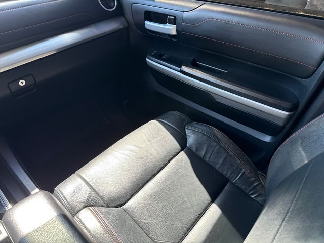 LEATHER INTERIOR, ALLOY WHEELS, LCD DISPLAY SCREEN, POWER DRIVER'S SEAT, HEATED FRONT SEATS, BACK UP CAMERA, 38 Gallon Fuel Tank Capacity, ABS brakes, Active Cruise Control, Alloy wheels, Anti-Theft Immobilizer w/Alarm, Auto-Dimming Rear-View Mirror, Color-Keyed Power Heated Exterior Mirrors, Compass, Deck Rail System, Electronic Stability Control, Heated door mirrors, HomeLink Universal Transceiver, Illuminated entry, Low tire pressure warning, Navigation System, Power moonroof, Power Tilt & Slide Moonroof w/Sliding Sunshade, Remote keyless entry, Rigid Industries LED Fog Lights, Traction control, TRD Pro Package. This vehicle comes well equipped with TRD Pro Package (38 Gallon Fuel Tank Capacity, Anti-Theft Immobilizer w/Alarm, Auto-Dimming Rear-View Mirror, Color-Keyed Power Heated Exterior Mirrors, Compass, Deck Rail System, HomeLink Universal Transceiver, Power Tilt & Slide Moonroof w/Sliding Sunshade, and Rigid Industries LED Fog Lights), ABS brakes, Active Cruise Control, Alloy wheels, Electronic Stability Control, Heated door mirrors, Illuminated entry, Low tire pressure warning, Navigation System, Power moonroof, Remote keyless entry, and Traction control TRD Pro Package (38 Gallon Fuel Tank Capacity, Anti-Theft Immobilizer w/Alarm, Auto-Dimming Rear-View Mirror, Color-Keyed Power Heated Exterior Mirrors, Compass, Deck Rail System, HomeLink Universal Transceiver, Power Tilt & Slide Moonroof w/Sliding Sunshade, and Rigid Industries LED Fog Lights), ABS brakes, Active Cruise Control, Alloy wheels, Electronic Stability Control, Heated door mirrors, Illuminated entry, Low tire pressure warning, Navigation System, Power moonroof, Remote keyless entry, Traction control, 4-Wheel Disc Brakes, 9 Speakers, Air Conditioning, AM/FM radio: SiriusXM, Auto High-beam Headlights, Auto-dimming Rear-View mirror, Brake assist, Bumpers: body-color, CD player, Delay-off headlights, Driver door bin, Driver vanity mirror, Dual front impact airbags, Dual front side impact airbags, Exterior Parking Camera Rear, Front anti-roll bar, Front Bucket Seats, Front Bucket Seats w/TRD Pro Logos, Front Center Armrest, Front fog lights, Front reading lights, Front wheel independent suspension, Fully automatic headlights, Garage door transmitter: HomeLink, Knee airbag, Leather Seat Trim (LF), Leather Shift Knob, Occupant sensing airbag, Outside temperature display, Overhead airbag, Overhead console, Panic alarm, Passenger door bin, Passenger vanity mirror, Power door mirrors, Power driver seat, Power steering, Power windows, Radio data system, Radio: Entune Premium Audio AM/FM w/HD Radio & CD, Rear reading lights, Rear seat center armrest, Rear step bumper, Rear window defroster, Security system, Speed control, Speed-sensing steering, Split folding rear seat, Steering wheel mounted audio controls, Tachometer, TBD Axle Ratio, Telescoping steering wheel, Tilt steering wheel, Trip computer, Variably intermittent wipers, Voltmeter, and Wheels: 18" BBS 5-Spoke Satin Black Forged-Alum.
