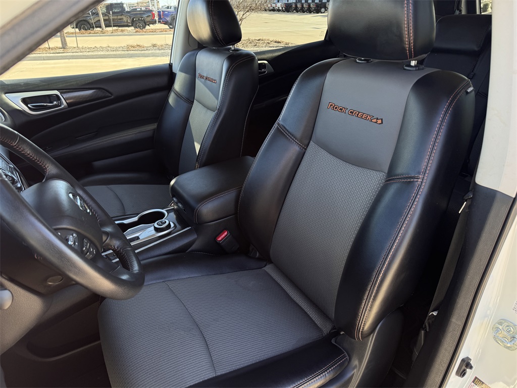 4WD, Bluetooth, Hands-Free Connections, Portable Audio Connections, Premium Audio, 3rd Row Seats, Backup Camera, Premium Wheels, High Performance Tires, Pathfinder SV, 4D Sport Utility, V6, CVT with Xtronic, 4WD, Pearl White Tricoat, Rock Creek w/Unique Rock Creek Edition Seating Surfaces, Black Door Handles, Black License Plate Finisher, Black Mesh Grille & V-Motion, Black Molded Over Fenders, Black Outside Rearview Mirrors, Black Roof Rails, Blind Spot Warning, Front Aesthetic Silver Skid Plate, Premium Metallic Interior Trim, Rear Parking Sensors, Rock Creek Edition, Splash Guards, Trailer Tow Hitch & Harness, Unique Front Door Badging, Unique Rock Creek Edition Seating Surfaces, Wheels: 18" Unique Dark.