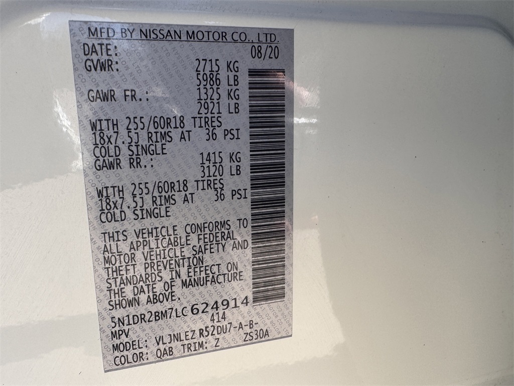 2020 Pearl White Tricoat Nissan Pathfinder V6 4WD SV