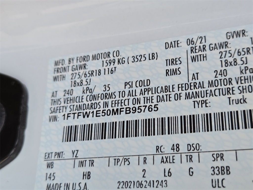 2021 Oxford White Ford F-150 5.0L V8 4WD Lariat