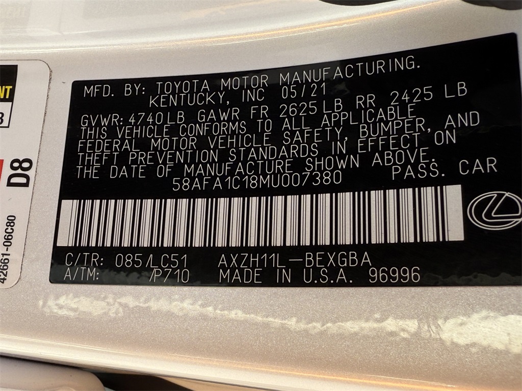 2021 Eminent White Pearl Lexus ES 2.5L I4 DOHC 16V FWD 300h Ultra Luxury