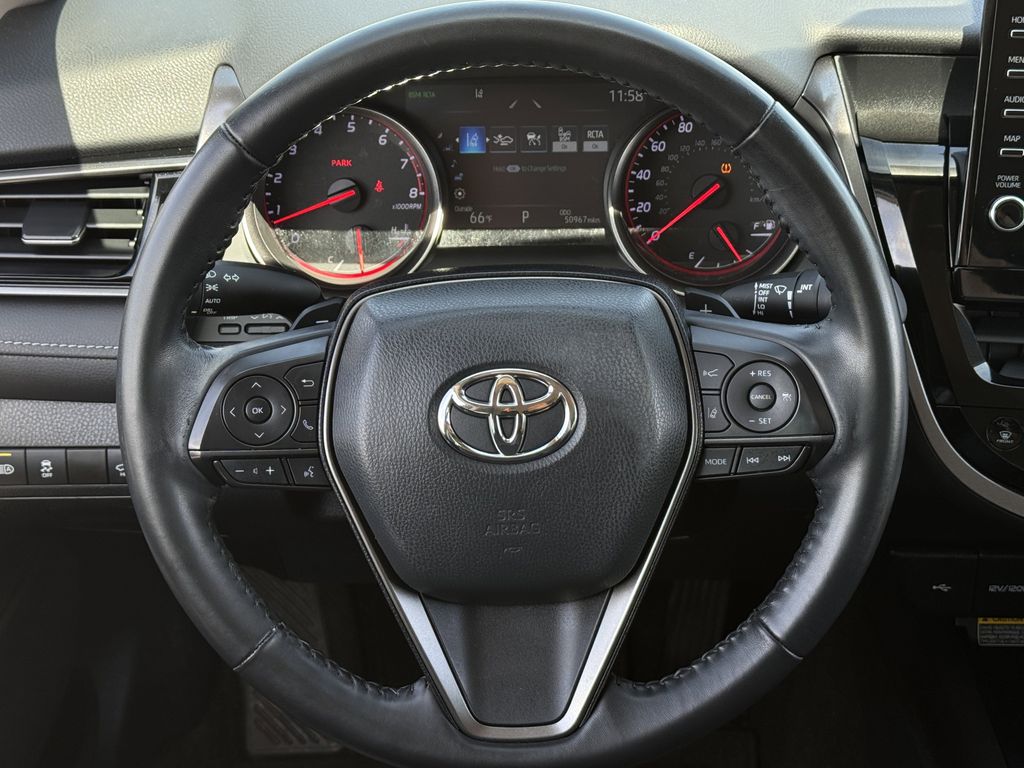 Bluetooth, Hands-Free Connections, Navigation / GPS / Telematics, Portable Audio Connections, Premium Audio, Backup Camera, Premium Wheels, High Performance Tires, Camry XSE, 4D Sedan, 2.5L I4 DOHC 16V, 8-Speed Automatic, FWD, Black w/Perforated Leather Seat Trim, Black Out Badges (TMS), Wheels: 8.0J x 19" Black Machined-Finish Alloy.