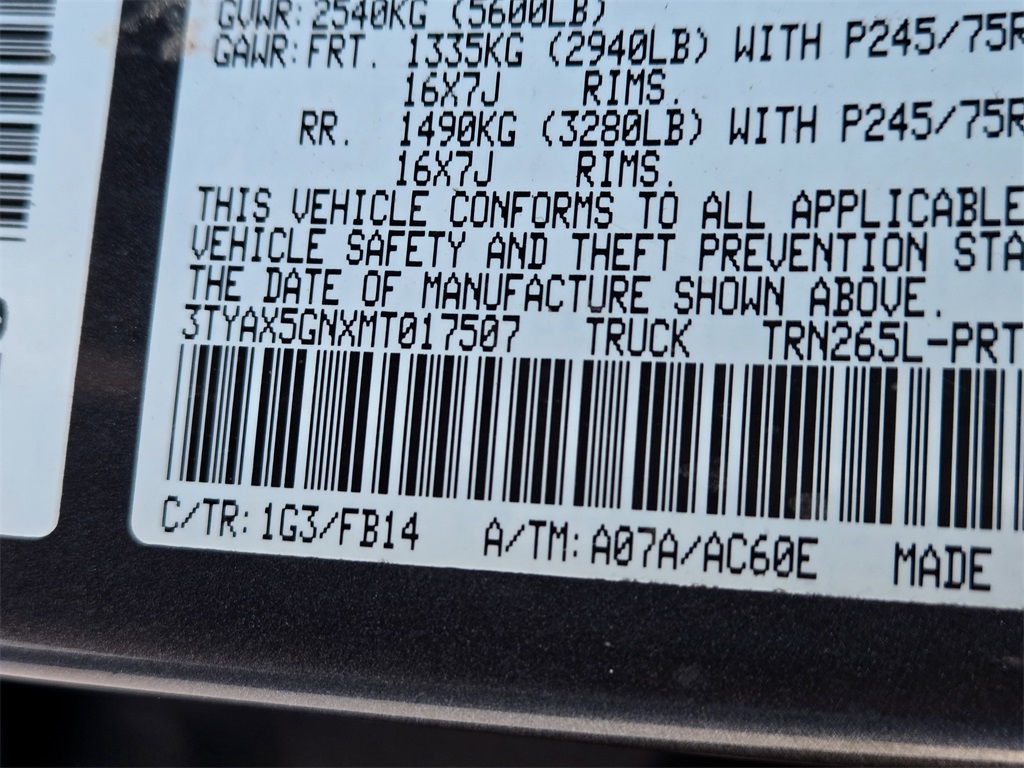 2021 Magnetic Gray Metallic Toyota Tacoma 2.7L SMPI DOHC RWD SR