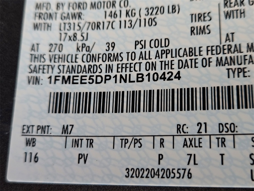 VIN 1FMEE5DP1NLB10424