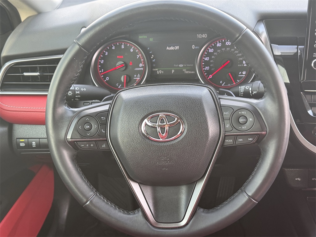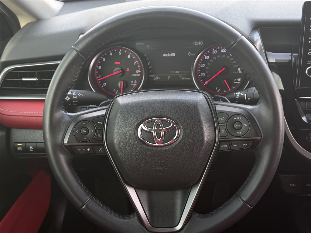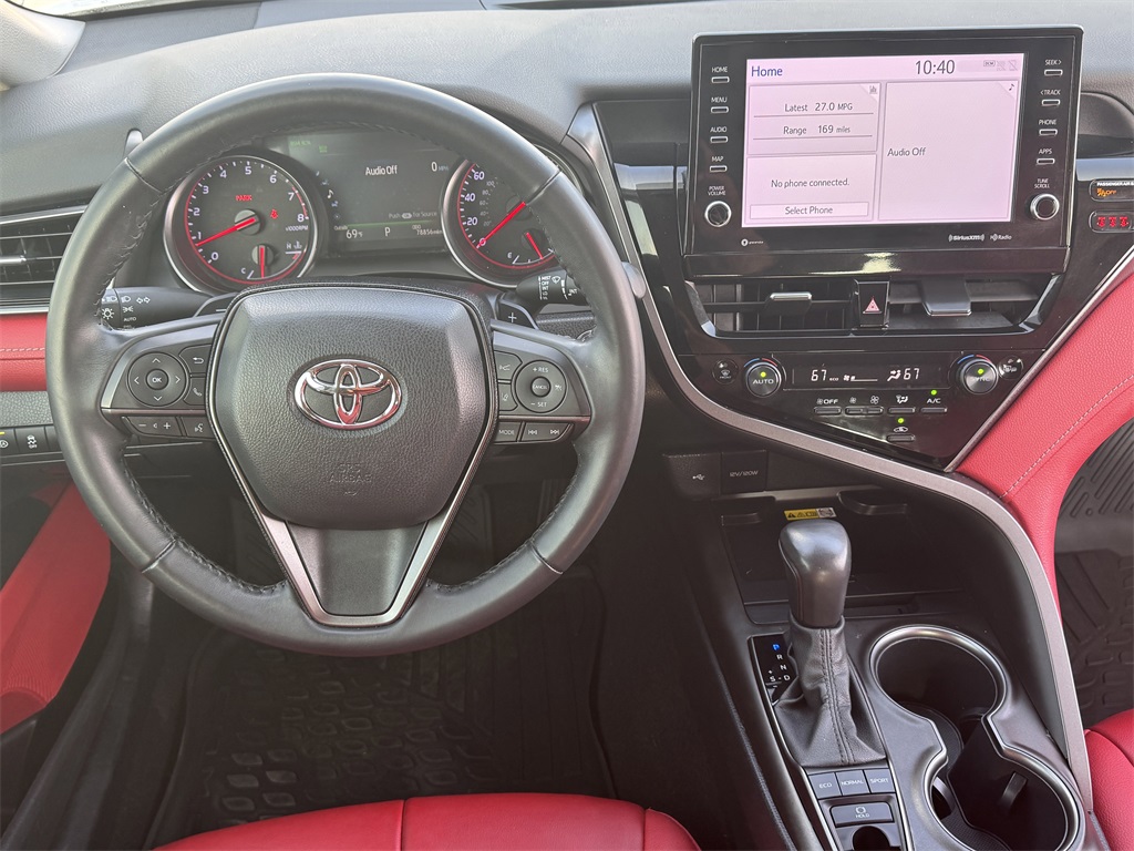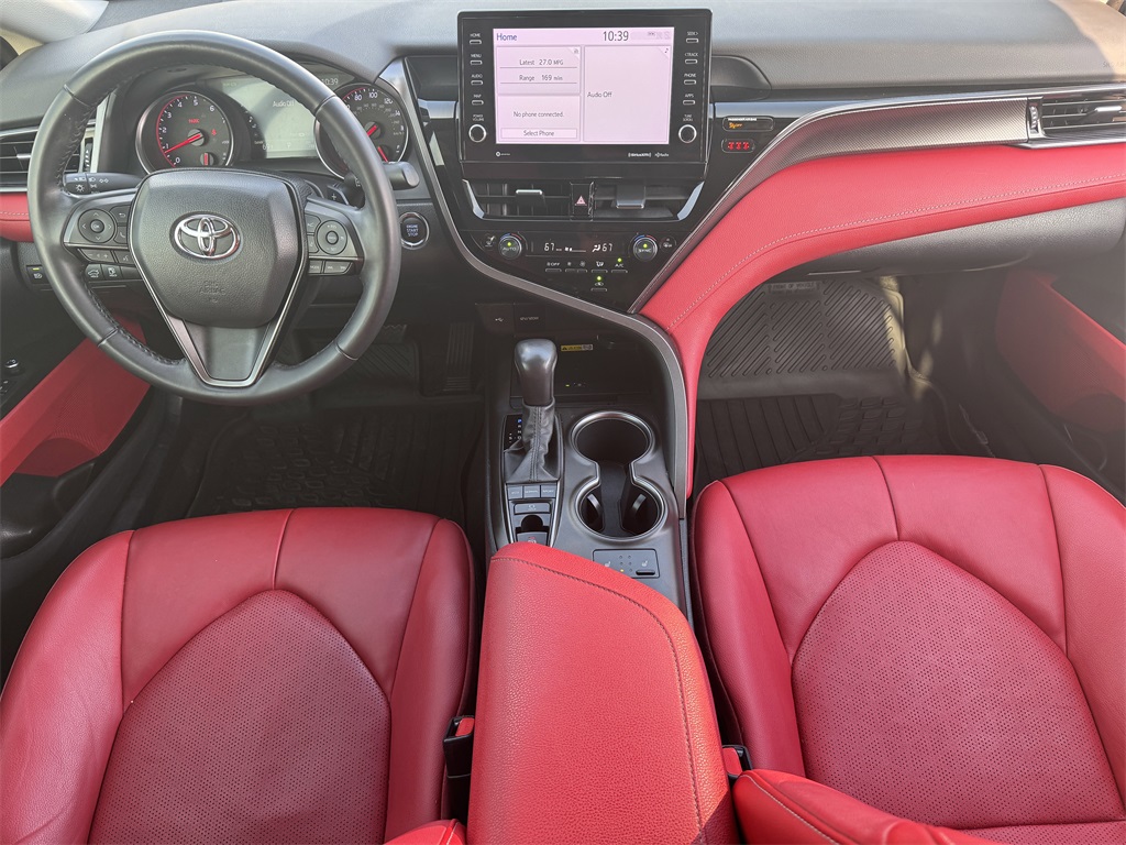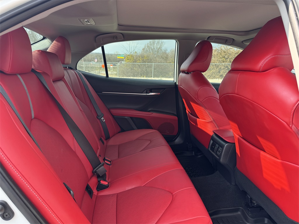 Clean CARFAX. Bluetooth, Hands-Free Connections, Navigation / GPS / Telematics, Portable Audio Connections, Backup Camera, Leather Seats, Premium Wheels, High Performance Tires, Sunroof / Moonroof, Camry XSE, 4D Sedan, 2.5L I4 DOHC 16V, 8-Speed Automatic, FWD, Cockpit Red w/Perforated Leather Seat Trim, Panoramic Glass Roof.