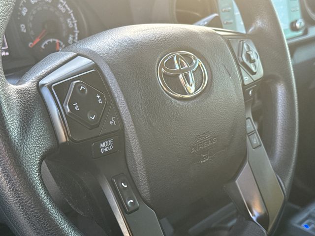 2022 Toyota Tacoma SR 4D Double Cab SR Midnight Black Metallic 2.7L SMPI DOHC 6-Speed Automatic RWD This vehicle comes well equipped with 4D Double Cab, 2.7L SMPI DOHC, 6-Speed Automatic, RWD, ABS brakes, Active Cruise Control, Air Conditioning, Apple CarPlay/Android Auto, Auto High-beam Headlights, Brake assist, Bumpers: body-color, Driver door bin, Electronic Stability Control, Exterior Parking Camera Rear, Front reading lights, Illuminated entry, Low tire pressure warning, Outside temperature display, Overhead console, Power door mirrors, Power steering, Power windows, Rear step bumper, Speed control, Speed-sensing steering, Steering wheel mounted audio controls, and Traction control.