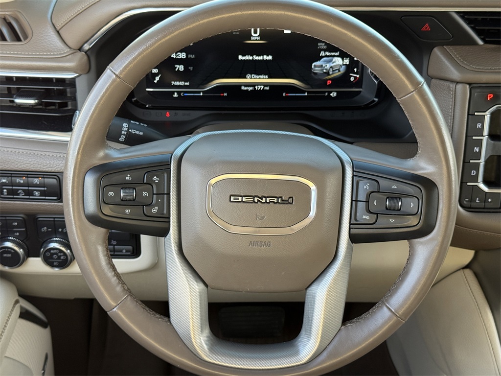 CARFAX One-Owner. Clean CARFAX. 4WD, Bluetooth, Hands-Free Connections, Navigation / GPS / Telematics, Portable Audio Connections, Premium Audio, 3rd Row Seats, Backup Camera, Leather Seats, Premium Wheels, High Performance Tires, Sunroof / Moonroof, Towing Package, Yukon Denali, 4D Sport Utility, EcoTec3 6.2L V8, 10-Speed Automatic with Overdrive, 4WD, Sterling Metallic, Teak/Light Shale w/Perforated Leather Seating Surfaces, 15" Diagonal Multi-Color Head-Up Display, 2 Presets For Outside Rearview Mirrors, 3 Years of GMC Connected Services, 3 Years of OnStar Safety & Security, 3rd Row 60/40 Power-Folding Split-Bench Seat, Bose 14-Speaker Surround w/CenterPoint, Bright Front & Rear Door Sill Plates, Chrome Door Handles w/Body-Color Strip, Dual Exhaust System, Enhanced Automatic Emergency Braking, Floor Console, Galvano Bodyside Moldings, Hands-Free Power Programmable Rear Liftgate, HD Surround Vision, Heated & Ventilated Driver & Front Passenger Seats, Heated 2nd Row Outboard Position Seats, Heated Driver & Front Passenger Seats, Heated Steering Wheel, Hill Descent Control, Inside Rear-View Auto-Dimming Mirror, License Plate Front Mounting Package, Max Trailering Package, Navigation System, Outside Heated Power-Adjustable Mirrors, Power Release 2nd Row Bucket Seats, Power Tilt & Telescopic Steering Column, Preferred Equipment Group 5SA, Rear Pedestrian Alert, Safety Alert Seat, Universal Home Remote, Wireless Charging.
