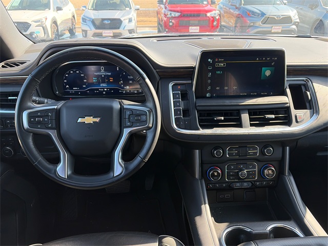 APPLE CAR PLAY, ANDROID AUTO, BLUETOOTH, LEATHER INTERIOR, ALLOY WHEELS, BACK UP CAMERA, BLIND SPOT MONITOR, LANE DEPARTURE, POWER DRIVER' SEAT, HEATED SEATS, LCD DISPLAY CREEN, 3RD ROW SEAT, WELL MAINTAINED, Tahoe Premier, 4D Sport Utility, 4WD, 1st & 2nd Row Color-Keyed Carpeted Floor Mats, 2-Speed Active Electronic AutoTrac Transfer Case, 20" x 9" Polished Aluminum Wheels, 3rd Row 60/40 Power-Folding Split-Bench Seat, Auto-Dimming Inside Rear-View Mirror, Bose 10-Speaker Centerpoint Surround Audio Sys Ft, Bright Front & Rear Door Sill Plates, Chrome Door Handles w/Body-Color Strip, Chrome Mirror Caps, Color-Keyed Carpeting Floor Covering, Driver & Front Outboard Passenger Airbags, Dual Exhaust System, Enhanced Driver Information Center, Floor Console, Hands-Free Rear Power Programmable Liftgate, Heated 2nd Row Outboard Seats, Heated Steering Wheel, Hill Descent Control, Lane Change Alert w/Side Blind Zone Alert, LED Daytime Running Lamps, Memory Settings, Navigation System, Outside Heated Power-Adjustable Mirrors, Power Liftgate, Power Release 2nd Row Bucket Seats, Power Tilt & Telescopic Steering Column, Preferred Equipment Group 1LZ, Rear Cross Traffic Alert, Remote Start, Safety Alert Seat, SiriusXM w/360L, Universal Home Remote, Wireless Charging, Wrapped Steering Wheel.