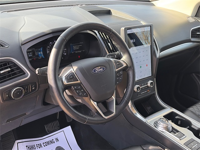 APPLE CAR PLAY, ANDROID AUTO, BLUETOOTH, LEATHER INTERIOR, ALLOY WHEELS, BACK UP CAMERA, BLIND SPOT MONITOR, LANE DEPARTURE, POWER DRIVER' SEAT, LCD DISPLAY CREEN, WELL MAINTAINED, Edge Titanium, 4D Sport Utility, AWD, Black Metallic, Brake assist, Equipment Group 300A, Power Liftgate, Wheels: 19" Luster Nickel-Painted Aluminum.