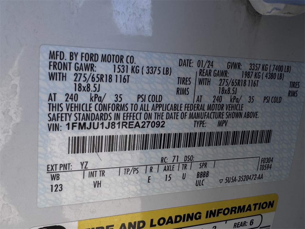 2024 Oxford White Ford Expedition EcoBoost 3.5L V6 GTDi DOHC 24V Twin Turbocharged 4WD XLT