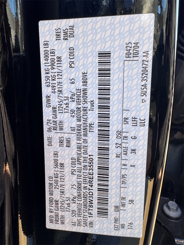 2024 Agate Black Metallic Ford F-350SD Power Stroke 6.7L V8 DI 32V OHV Turbodiesel 4WD Lariat