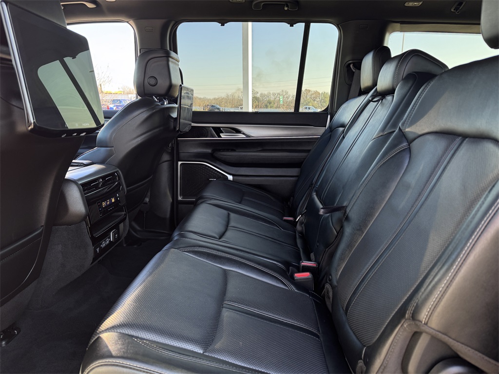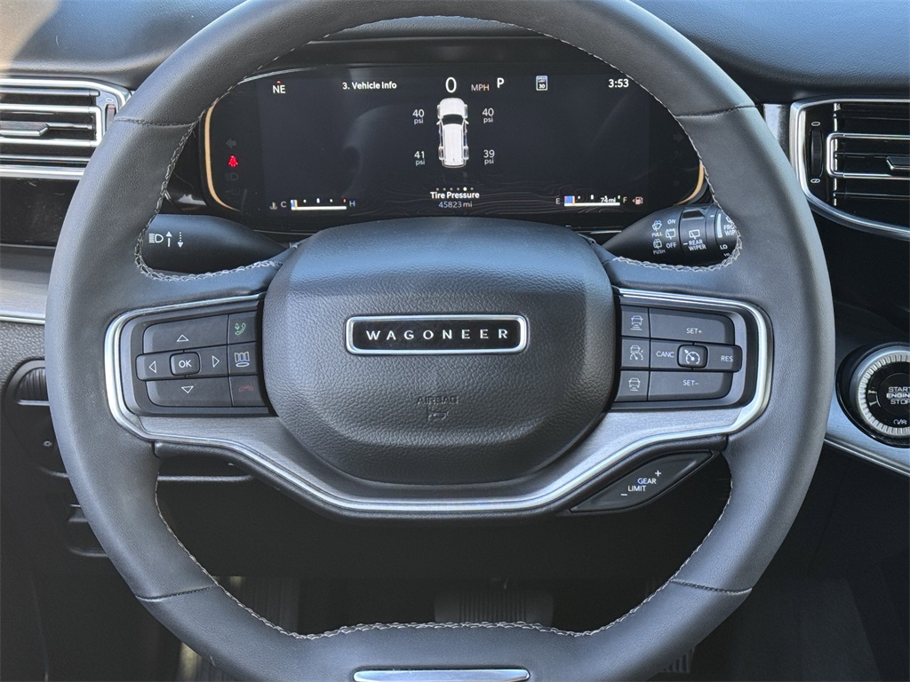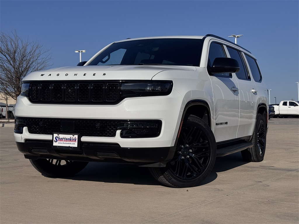 CARFAX One-Owner. Bluetooth, Hands-Free Connections, Navigation / GPS / Telematics, Portable Audio Connections, Premium Audio, 3rd Row Seats, Backup Camera, Heated and Cooled Seats, Leather Seats, Premium Wheels, High Performance Tires, Sunroof / Moonroof, Power Liftgate, Towing Package, Wagoneer Series II, 4D Sport Utility, 3.0L I6, 8-Speed Automatic, RWD, Bright White Clearcoat, Global Black w/Leather Trimmed Bucket Seats, 2nd Row Manual Window Shades, 3 Panel Sunroof, Adjustable Roof Rail Crossbars, Amazon Fire TV Built-In, Auto High Beam Headlamp Control, Black Interior Accents, Carbide Appearance Package, Cargo Cover, Convenience Group I, Drowsy Driver Detection, Heads-Up Display, Intersection Collision Assist System, Navigation System, P&P Park & Unpark Assist w/Stop System, Piano Black Exterior Accents, Quick Order Package 25F Carbide, Rear Seat Video Group 1 (DISC), Reversible Carpet/Vinyl Cargo Mat, Seatback Video Screens, Side Distance Warning, Surround View Camera System, Traffic Sign Recognition, Video USB Port, Wheels: 20" x 9" Gloss Black Painted Aluminum.