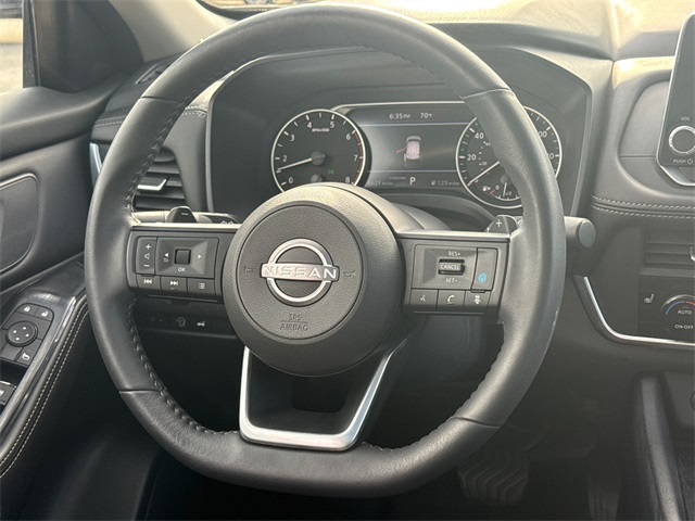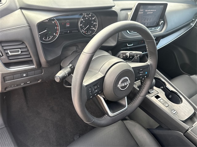 CARFAX One-Owner. 2024 Nissan Rogue Gun Metallic 4D Sport Utility FWD SV CVT with Xtronic Rogue SV, 1.5L DOHC, CVT with Xtronic, FWD, Gun Metallic, Charcoal Cloth, 5.676 Axle Ratio, Chrome Rear Bumper Protector, Fully automatic headlights, Heated door mirrors, Heated Leather-Wrapped Steering Wheel, Leatherette Door Trim Inserts w/Stitch, NissanConnect featuring Apple CarPlay and Android Auto, Panoramic Moonroof, Power driver seat, Power Liftgate, Power steering, Prima-Tex Leatherette Seat Trim w/Perforation, Wheels: 18" Dark Painted Machine Finished Alloy. Priced below KBB Fair Purchase Price! Odometer is 27574 miles below market average! 30/37 City/Highway MPG 1.5L DOHC