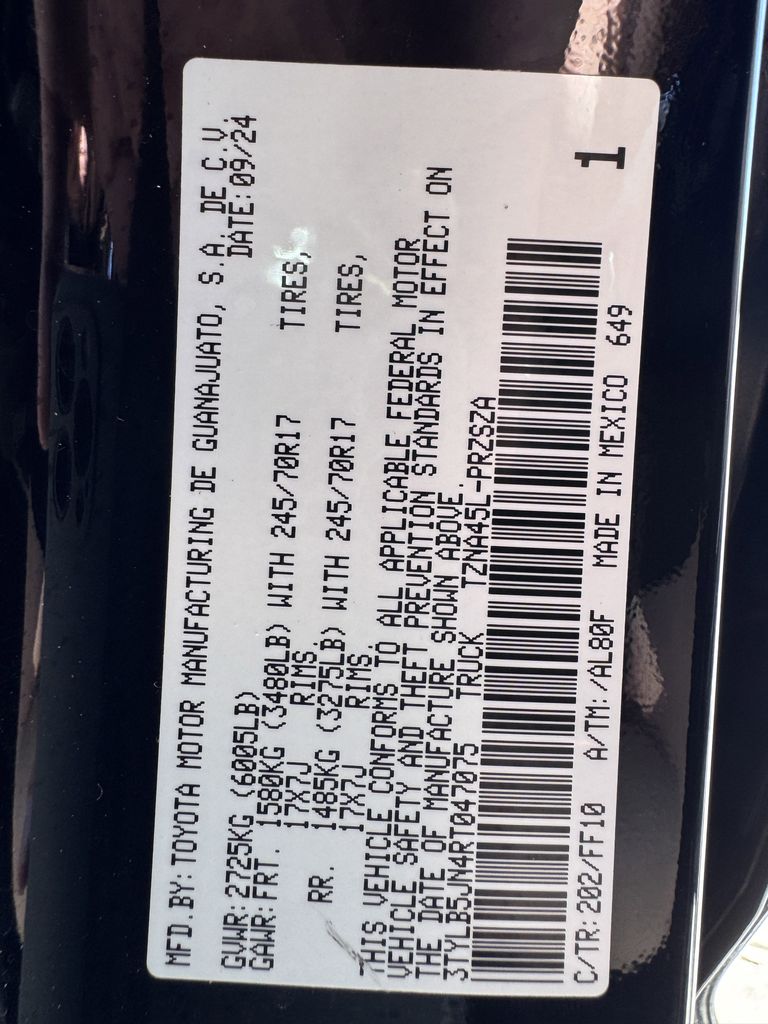 2024 Black Toyota Tacoma 2.4L 4-Cylinder 4WD SR5