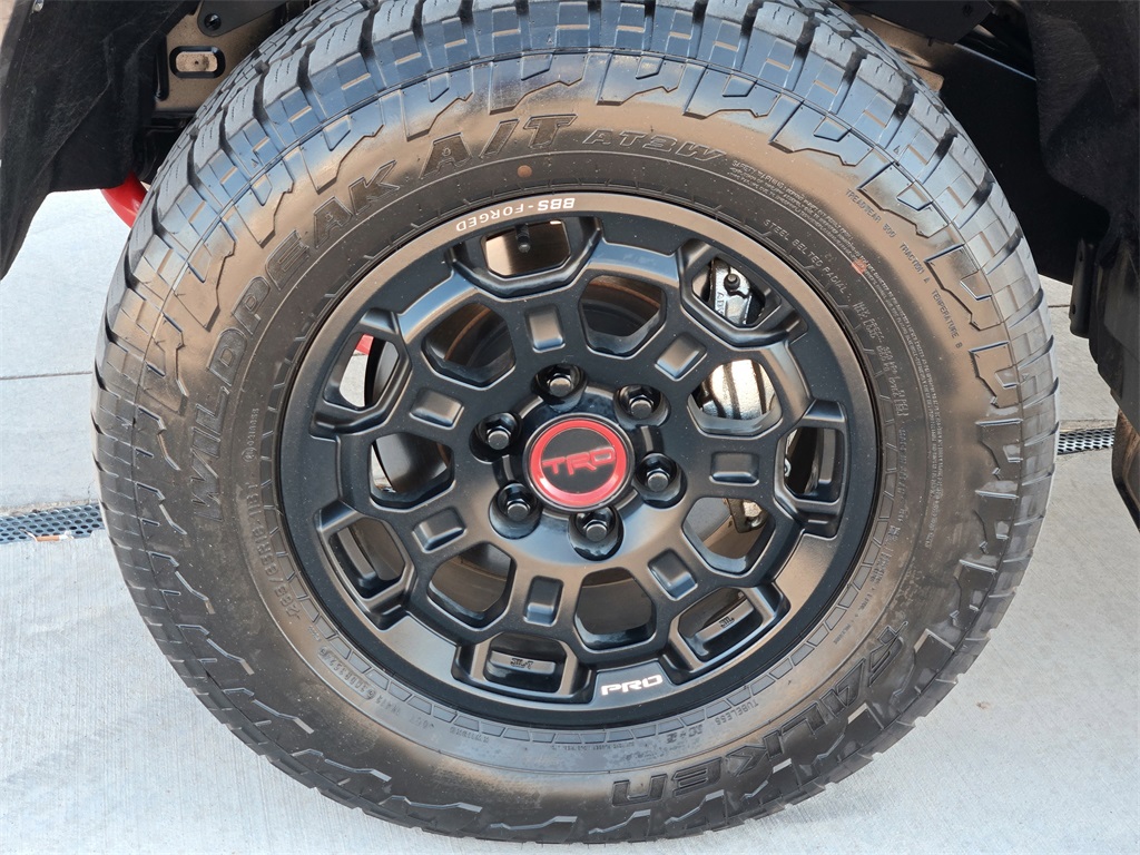 - 18 x 8-inch front and rear black forged aluminum wheels