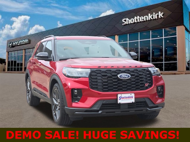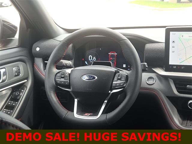 CARFAX One-Owner. Priced below KBB Fair Purchase Price! APPLE CAR PLAY, ANDROID AUTO, BLUETOOTH, POWER MOONROOF/SUNROOF, HEATED FRONT SEATS, COOLED FRONT SEATS, BLIND SPOT MONITOR, Explorer ST, 3.0L EcoBoost V6, 10-Speed Automatic, 4WD, 3rd row seats: bench, Apple CarPlay/Android Auto, Auto High-beam Headlights, Auto-dimming Rear-View mirror, B&O Sound System by Bang & Olufsen, Brake assist, Delay-off headlights, Electronic Stability Control, Equipment Group 400A Standard Package, Exterior Parking Camera Rear, Front reading lights, Garage door transmitter, Heated front seats, Heated/Ventilated Miko Sport Captain's Chairs, Knee airbag, Memory seat, Power Liftgate, Radio: B&O Sound System by Bang & Olufsen, Ventilated front seats. This vehicle comes well equipped with Equipment Group 400A Standard Package, Explorer ST, 3.0L EcoBoost V6, 10-Speed Automatic, 4WD, 3rd row seats: bench, Apple CarPlay/Android Auto, Auto High-beam Headlights, Auto-dimming Rear-View mirror, B&O Sound System by Bang & Olufsen, Brake assist, Delay-off headlights, Electronic Stability Control, Exterior Parking Camera Rear, Front reading lights, Garage door transmitter, Heated front seats, Heated/Ventilated Miko Sport Captain's Chairs, Knee airbag, Memory seat, Power Liftgate, Radio: B&O Sound System by Bang & Olufsen, and Ventilated front seats Equipment Group 400A Standard Package, Explorer ST, 3.0L EcoBoost V6, 10-Speed Automatic, 4WD, 3rd row seats: bench, Apple CarPlay/Android Auto, Auto High-beam Headlights, Auto-dimming Rear-View mirror, B&O Sound System by Bang & Olufsen, Brake assist, Delay-off headlights, Electronic Stability Control, Exterior Parking Camera Rear, Front reading lights, Garage door transmitter, Heated front seats, Heated/Ventilated Miko Sport Captain's Chairs, Knee airbag, Memory seat, Power Liftgate, Radio: B&O Sound System by Bang & Olufsen, Ventilated front seats, 10 Speakers, 3.58 Non-Limited Slip Rear Axle, 4-Wheel Disc Brakes, ABS brakes, Air Conditioning, Alloy wheels, Auto-dimming door mirrors, Automatic temperature control, Bumpers: body-color, Compass, Driver door bin, Driver vanity mirror, Dual front impact airbags, Dual front side impact airbags, Emergency communication system: 911 Assist, Four wheel independent suspension, Front anti-roll bar, Front Bucket Seats, Front Center Armrest, Front dual zone A/C, Front fog lights, Front License Plate Bracket, Fully automatic headlights, Heated door mirrors, Heated rear seats, Heated steering wheel, Illuminated entry, Leather steering wheel, Low tire pressure warning, Navigation System, Occupant sensing airbag, Outside temperature display, Overhead airbag, Overhead console, Panic alarm, Panoramic Vista Roof w/Power Shade, Passenger door bin, Passenger vanity mirror, Power door mirrors, Power driver seat, Power passenger seat, Power steering, Power windows, Rain sensing wipers, Rear air conditioning, Rear anti-roll bar, Rear reading lights, Rear window defroster, Rear window wiper, Remote keyless entry, Security system, Speed control, Speed-sensing steering, Speed-Sensitive Wipers, Split folding rear seat, Spoiler, Sport steering wheel, Steering wheel mounted audio controls, Tachometer, Telescoping steering wheel, Tilt steering wheel, Traction control, Trip computer, Turn signal indicator mirrors, Variably intermittent wipers, and Wheels: 21" Magnetite-Painted Aluminum.