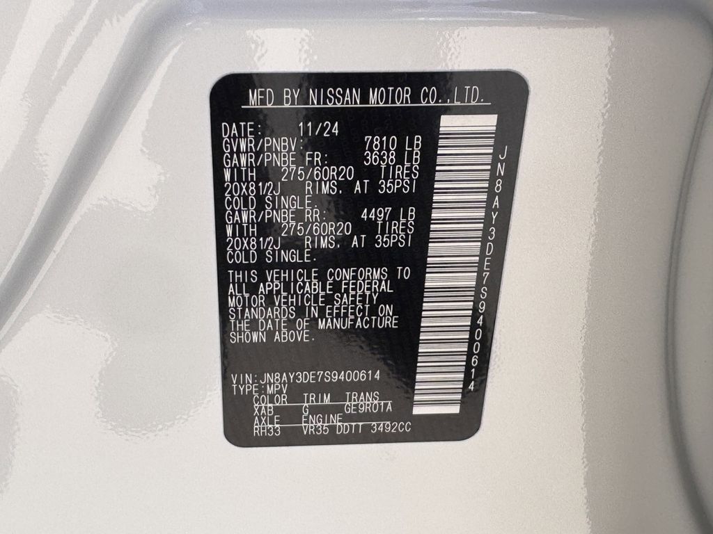 2025 Aspen White Tricoat/Super Black Nissan Armada 3.5L DOHC 4WD PRO-4X