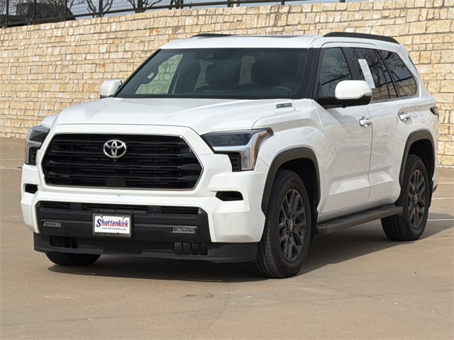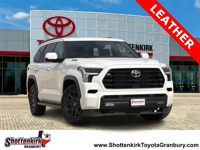 CARFAX One-Owner. 2025 Toyota Sequoia SR5 4D Sport Utility SR5 Ice Cap V6 Hybrid 10-Speed Automatic 4WD This vehicle comes well equipped with Sequoia SR5, 4D Sport Utility, V6 Hybrid, 10-Speed Automatic, 4WD, Ice Cap, Black w/Premium Leather Seat Trim, ABS brakes, Active Cruise Control, Alloy wheels, Auto High-beam Headlights, Auto-dimming door mirrors, Bumpers: body-color, Delay-off headlights, Electronic Stability Control, Front dual zone A/C, Front fog lights, Fully automatic headlights, Headlight cleaning, Heated door mirrors, Heated Front Seats, Heated front seats, Illuminated entry, Low tire pressure warning, Panic alarm, Power door mirrors, Power moonroof, Remote keyless entry, Security system, Speed control, Spoiler, Traction control, and Turn signal indicator mirrors.