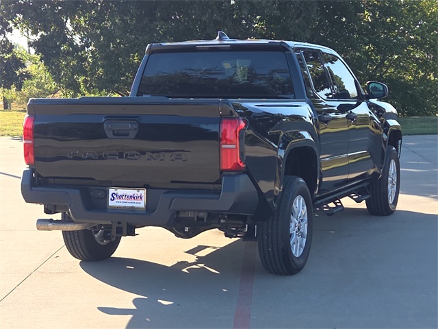 CARFAX One-Owner. 2025 Toyota Tacoma SR 4D Double Cab SR Black 2.4L 4-Cylinder 8-Speed Automatic RWD This vehicle comes well equipped with Tacoma SR, 4D Double Cab, 2.4L 4-Cylinder, 8-Speed Automatic, RWD, Black, Black w/SofTex Seat Trim, 6 Speakers, Air Conditioning, AM/FM radio: SiriusXM, Body Side Molding (TMS), Bumpers: body-color, Heated door mirrors, Power door mirrors, Radio: 8" Toyota Audio Multimedia, Rear step bumper, Rear window defroster, and Spray-On Bed Liner (TMS)