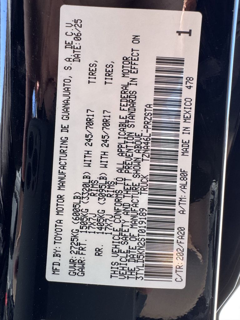 2025 Black Toyota Tacoma 2.4L 4-Cylinder 4WD SR